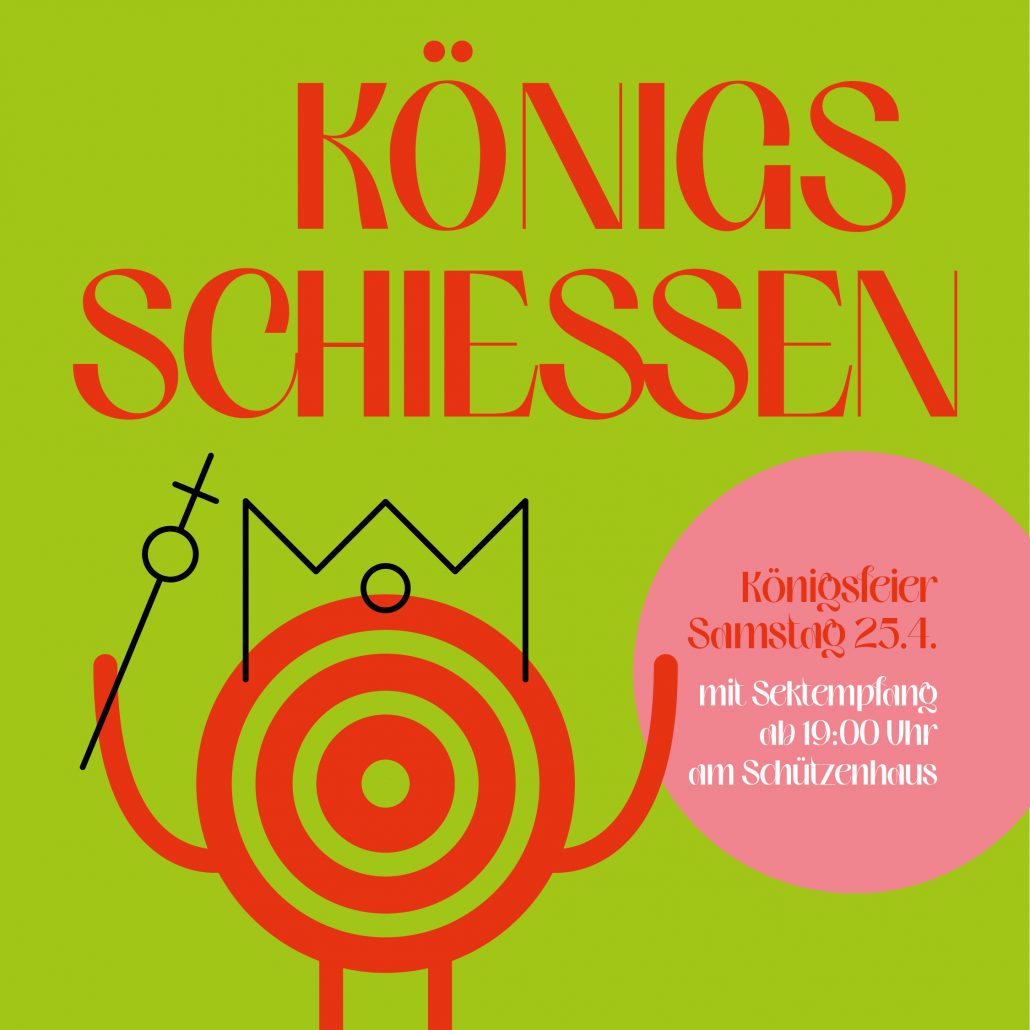Wir laden recht herzlich ein zum Königsschiessen, hier unsere Schießtermine: Bogen Sonntag, 05.04.2026, 16:00 Uhr bis 18:00 Uhr Bogen …